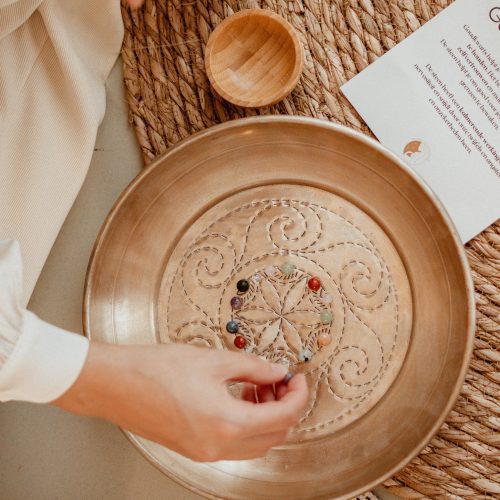 Naast het co-creëren van een warme liefdevolle cirkel gaan we gezamenlijk een armband maken van edelstenen voor de mama-to-be. Elke vrouw kiest een mooie intentie/gedachten als zij haar kralen zorgvuldig uitkiest. Als iedereen een aantal kralen heeft uitgekozen, rijgen we de armband. Zo ontstaat er een liefdevol gemaakte armband, wat verbonden is aan de aanwezige vrouwen. De armband zal helpen om de kracht, liefde en support te voelen van de vrouwen om haar heen wanneer ze dat nodig heeft.